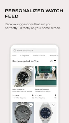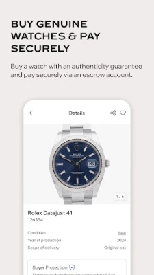 Πέρα από την ασφάλεια, η Chrono24 μεταμορφώνει την εμπειρία σας με ρολόγια σε κάτι μοναδικό. Με το πρωτοποριακό Watch Scanner, αρκεί μία φωτογραφία για να αναγνωρίσετε άμεσα την αξία ενός ρολογιού. Διαχειριστείτε τη συλλογή σας με το Watch Collection, παρακολουθώντας την αξία της σε καθημερινή βάση. Μην χάσετε ποτέ μια ευκαιρία, ενεργοποιώντας τις ειδοποιήσεις τιμής που σας ενημερώνουν αυτόματα για πτώσεις στις τιμές των αγαπημένων σας μοντέλων. Και ανακαλύψτε καθημερινά νέες εμπνεύσεις και εξατομικευμένες προτάσεις μέσα από το προσωπικό σας Feed.