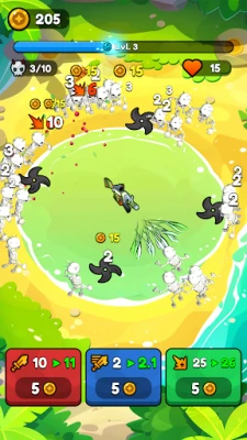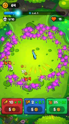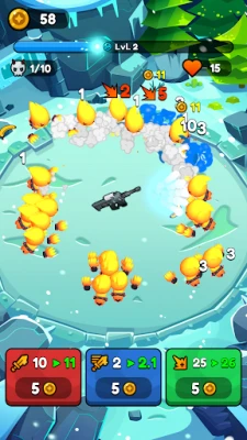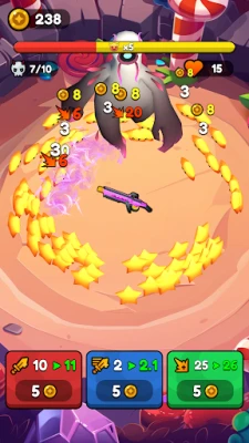 Ετοιμαστείτε για μια αδρεναλίνη που ανεβαίνει στα ύψη! Βυθιστείτε σε μια αρένα γεμάτη δράση, όπου το όπλο σας λειτουργεί αυτόματα, εκτοξεύοντας ασταμάτητα βλήματα ενώ ατελείωτα κύματα τεράτων ορμούν από κάθε κατεύθυνση. Ο ρυθμός είναι καταιγιστικός, η αγωνία κορυφώνεται και η επιβίωση είναι ο μοναδικός σας στόχος. Εστιάστε στο να αποφεύγετε τους εχθρούς, να υπερασπίζεστε την κεντρική σας θέση και να καθαρίζετε δέκα έντονους γύρους σε κάθε επίπεδο. Κάθε δευτερόλεπτο μετράει, κάθε σωστή κίνηση μπορεί να σας σώσει από την πλήρη καταστροφή. Συλλέξτε λάφυρα, αναπτύξτε τη δύναμή σας και γίνετε όλο και πιο δυνατοί σε κάθε σας προσπάθεια.