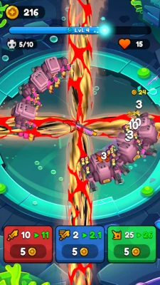 Ετοιμαστείτε για μια αδρεναλίνη που ανεβαίνει στα ύψη! Βυθιστείτε σε μια αρένα γεμάτη δράση, όπου το όπλο σας λειτουργεί αυτόματα, εκτοξεύοντας ασταμάτητα βλήματα ενώ ατελείωτα κύματα τεράτων ορμούν από κάθε κατεύθυνση. Ο ρυθμός είναι καταιγιστικός, η αγωνία κορυφώνεται και η επιβίωση είναι ο μοναδικός σας στόχος. Εστιάστε στο να αποφεύγετε τους εχθρούς, να υπερασπίζεστε την κεντρική σας θέση και να καθαρίζετε δέκα έντονους γύρους σε κάθε επίπεδο. Κάθε δευτερόλεπτο μετράει, κάθε σωστή κίνηση μπορεί να σας σώσει από την πλήρη καταστροφή. Συλλέξτε λάφυρα, αναπτύξτε τη δύναμή σας και γίνετε όλο και πιο δυνατοί σε κάθε σας προσπάθεια.