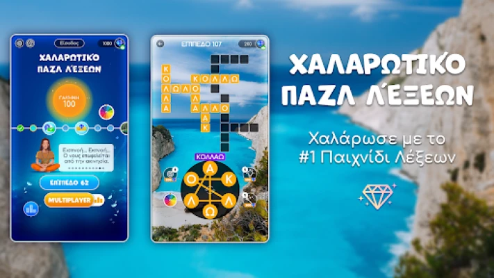 Βυθίσου σε έναν κόσμο ηρεμίας με το Χαλαρωτικό παζλ λέξεων. Ταξίδεψε σε μαγευτικά τοπία και εξωτικούς προορισμούς, συνδυάζοντας την απόλαυση των λέξεων με την χαλάρωση. Ανακάλυψε εκατοντάδες συναρπαστικά παζλ που θα οξύνουν το μυαλό σου και θα προσφέρουν μοναδικές στιγμές ευεξίας.