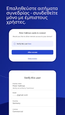 Η εφαρμογή TeamViewer QuickSupport παρέχει άμεση και ασφαλή απομακρυσμένη υποστήριξη για συσκευές κινητών, tablet, Chromebook και Android TV. Αποκτήστε γρήγορη βοήθεια από τους ειδικούς απευθείας στη συσκευή σας με αυτή την ισχυρή εφαρμογή της TeamViewer.
